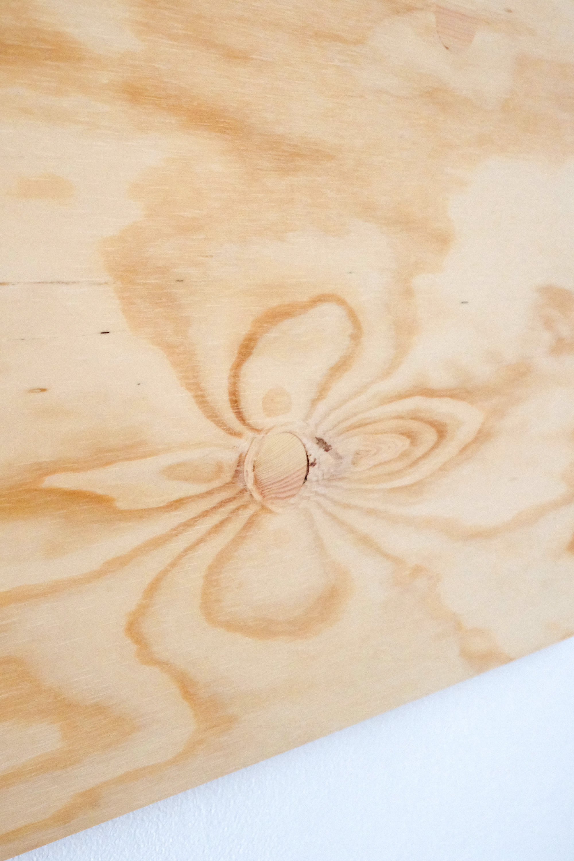 The wood knots are removed from a wooden panel and replaced by unknotted wood.